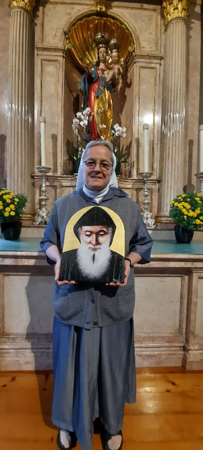 Sehr bin ich gespannt, was der Hl. Charbel noch alles tun wird. Wie er mein Herz berührt. Ich bin offen, und werde ihn in mein Kloster, in meine Zelle, Zimmer nehmen, da bekommt er einen besonders schönen Platz, so dass ich ihn immer sehe, und er mich. Die Gottinnigkeit, die Demut und Reinheit haben mich schon immer fasziniert. Und so möchte ich Nabih und Pascale danken für das grosse Geschenk, dass sie mir gemacht haben. In meinem Gebet wird natürlich auch der ganze Verein Solidarité Liban-Suisse sein.